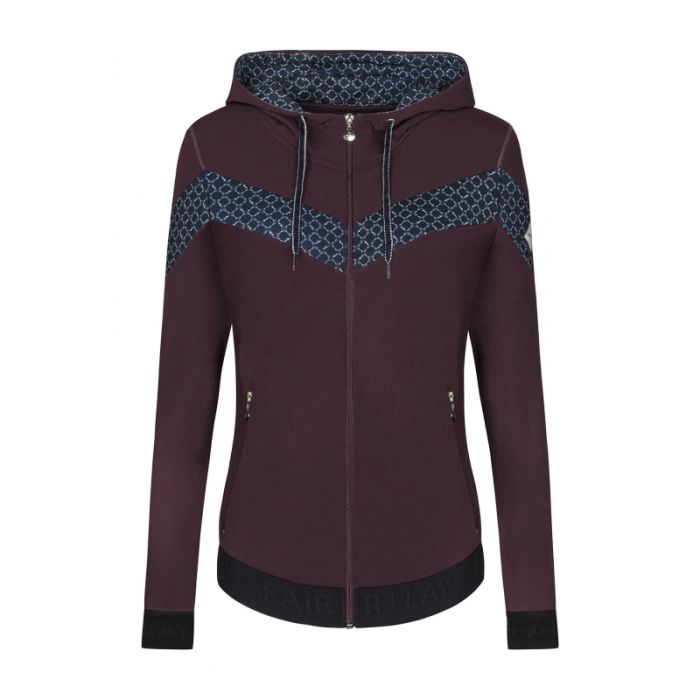 Dolny ściągacz i mankiety ozdobione gumą z wytłaczanym logo Fair Play.