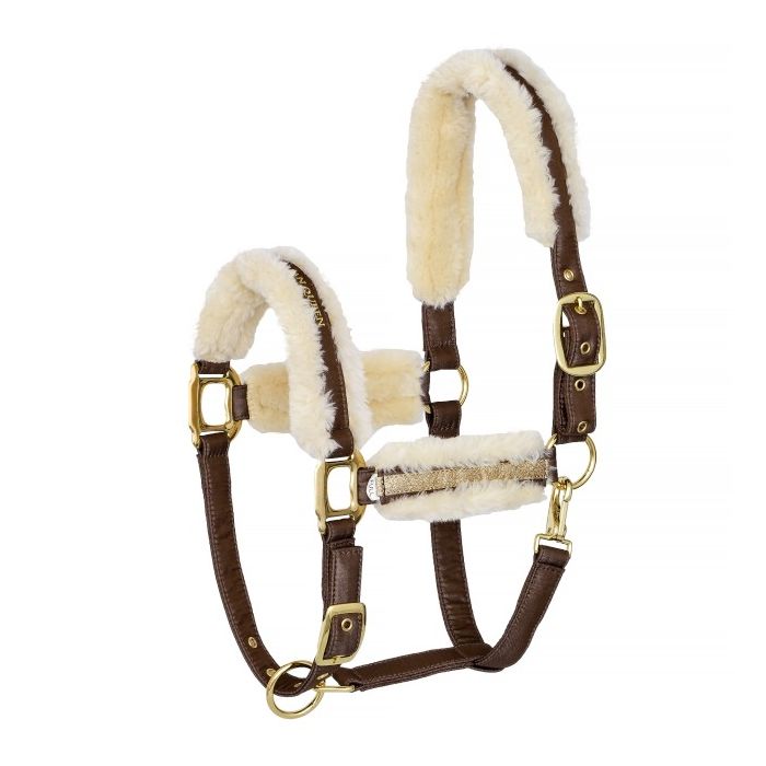 Kantar wykonany z wytrzymałej taśmy, podszyty sztucznym futerkiem. Zdobiony metaliczną tasiemką oraz haftem. Posiada szeroką regulację oraz wytrzymałe okucia.