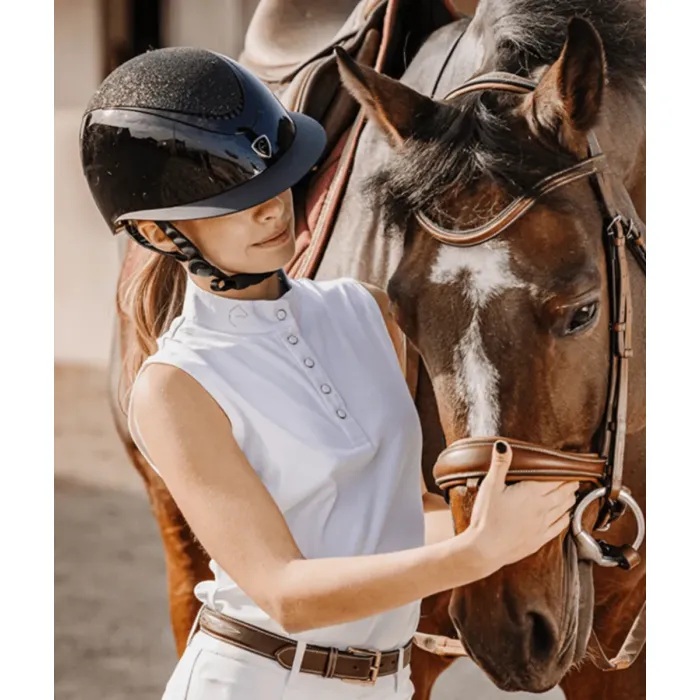 Subtelne logo z kryształków na kołnierzu