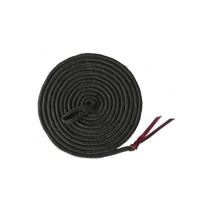 Lina wykonana z miękkiego polipropylenu. Bez zatrzasku. Z pętlą do mocowania kantara na jednym końcu i podwójnym skórzanym sznurkiem na drugim końcu.