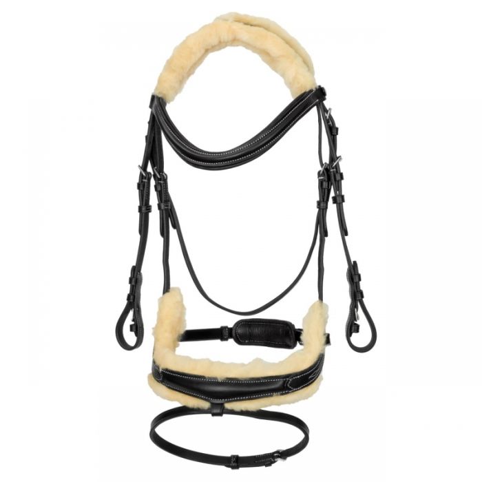 Zarówno nachrapnik jak i pasek potyliczny podszyte są naturalnym futerkiem.