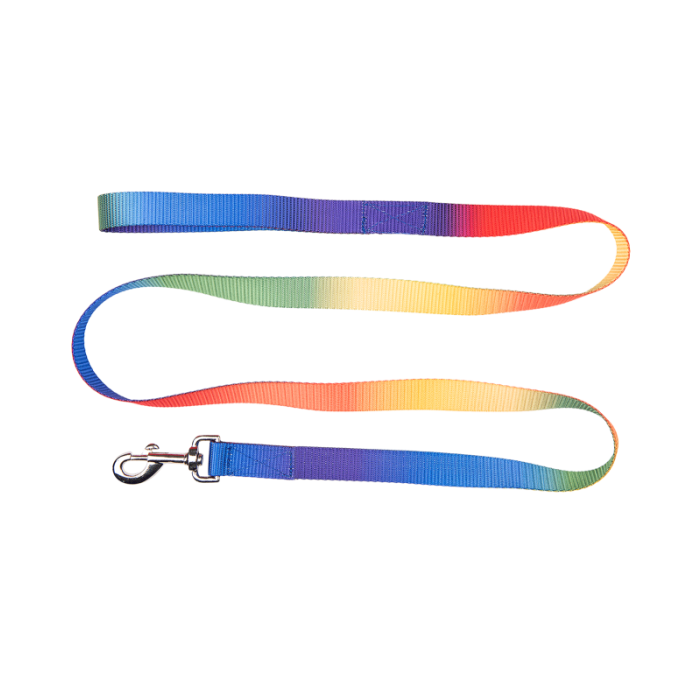 Uwiąz w jasnych neonowych kolorach. Z karabińczykiem i paskiem na rękę. Długość: ok. 1,80 m