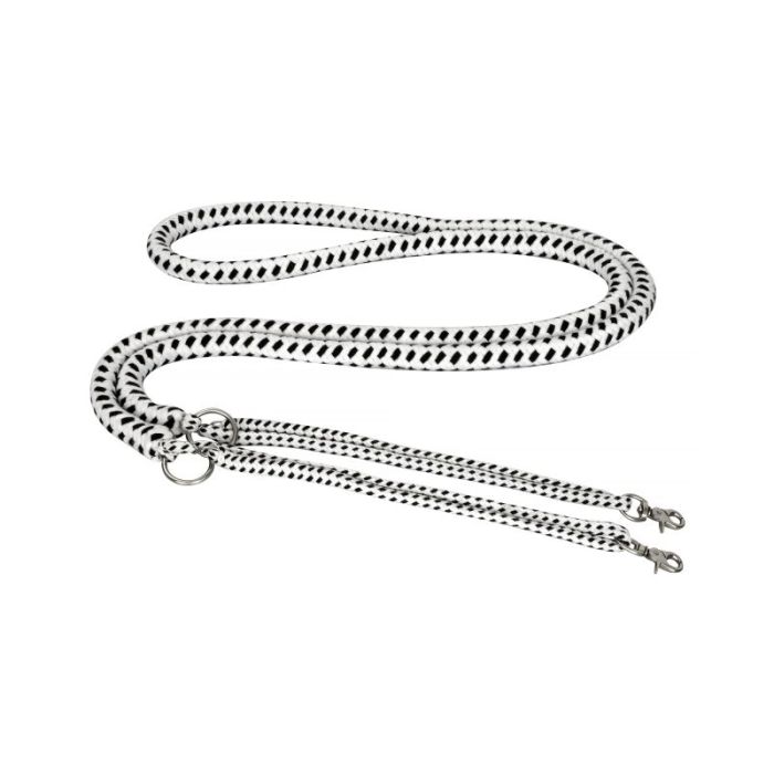 Wodza pomocnicza do pracy z ziemi, wykonana z miękkiej, grubej liny materiałowej, która dobrze układa się względem ciała zwierzęcia. Metalowe kółka trzymają wodzę między przednimi nogami.
