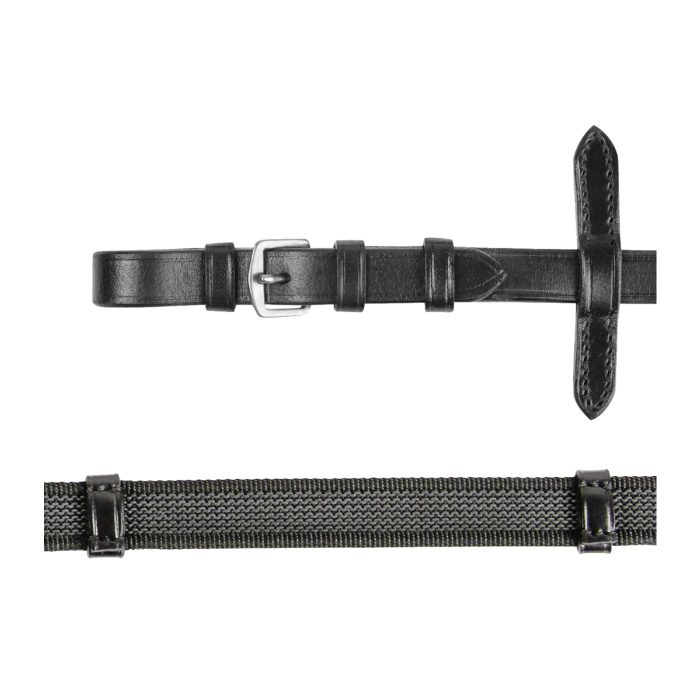 Ze zintegrowaną gumową powłoką. Ze skórzanymi paskami i suwakami Martingale. Asortyment wodzy z wysokiej jakości skóry, doskonale wykonany. Z klamrami ze stali nierdzewnej. Szerokość: 19mm